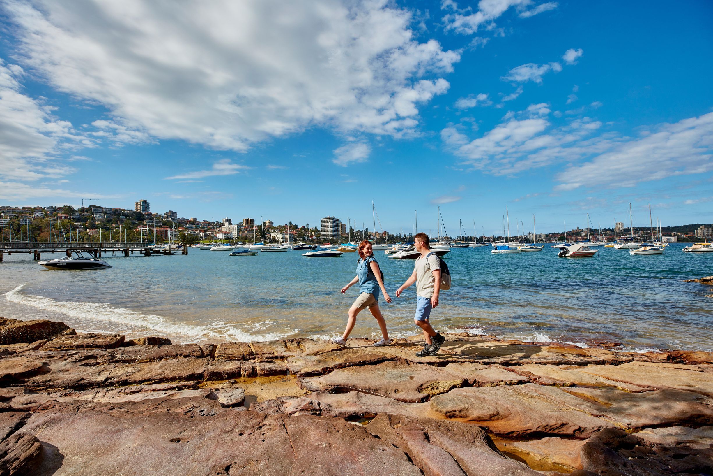 Couple enjoying a walk along from Spit to Manly