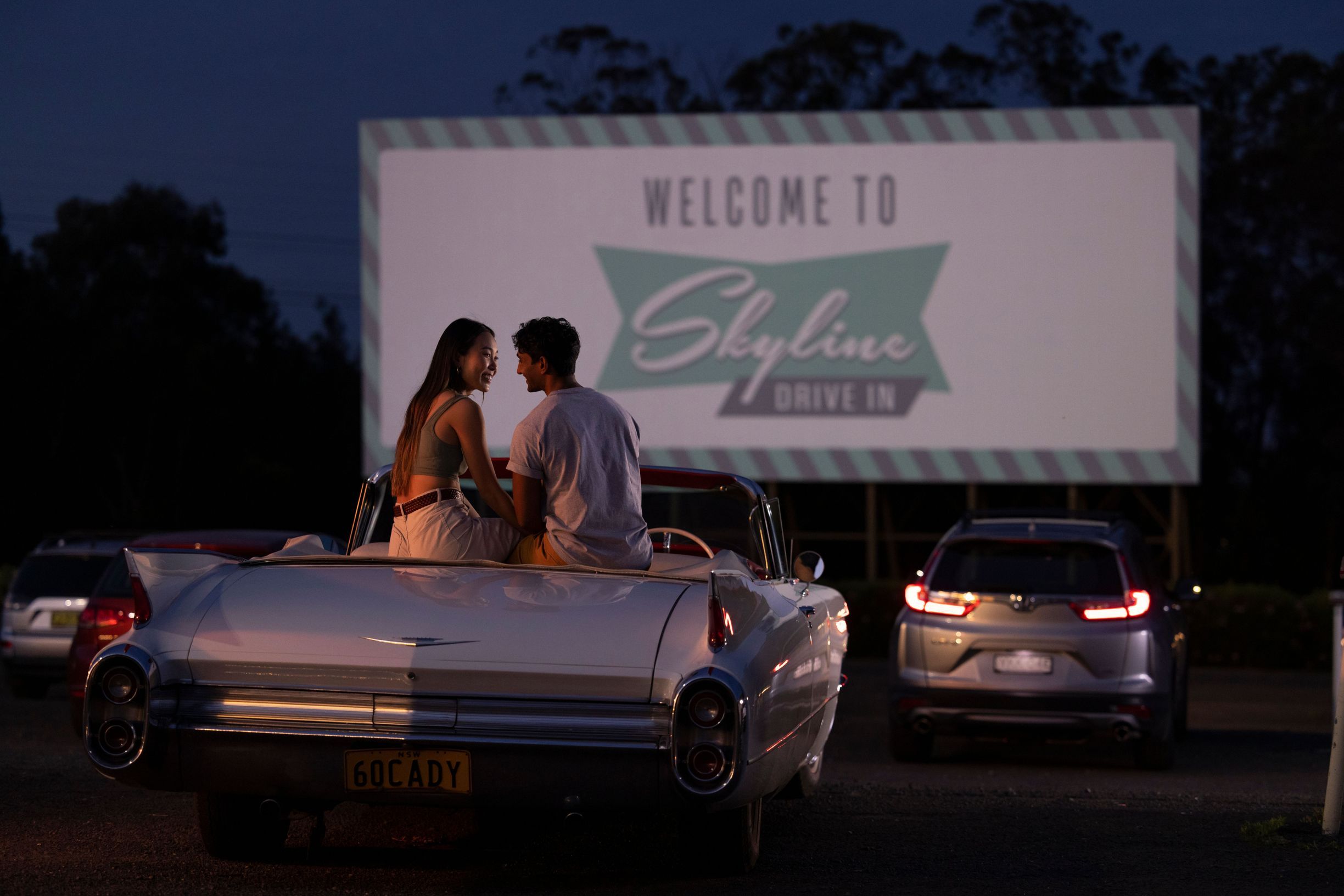 Couple sitting in their car ready to watch a movie at the Skyline Drive In Blacktown.