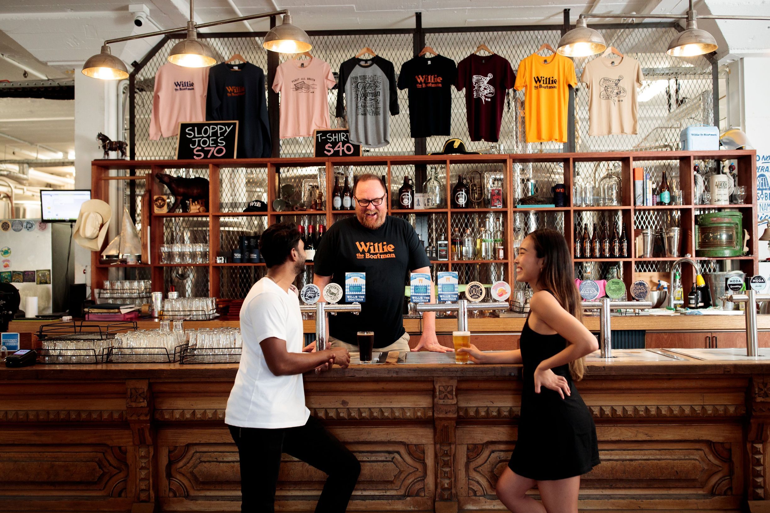 Couple ordering beers at Willie The Boatman, St. Peters.