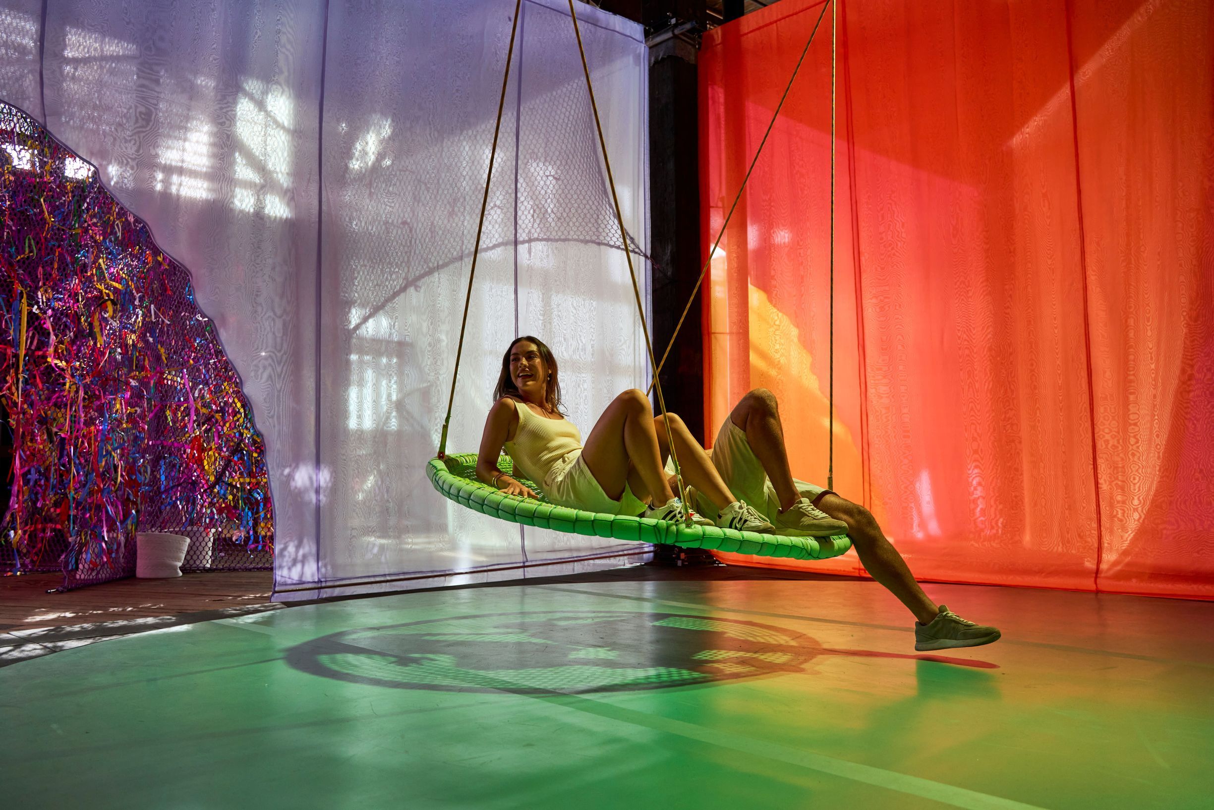 Couple experiencing the Colour Maze interactive installation during Sydney Festival 2025 at Walsh Bay Arts Precinct.